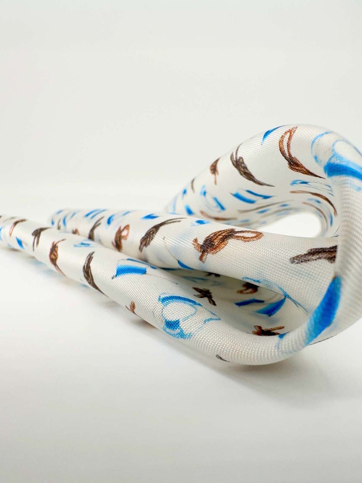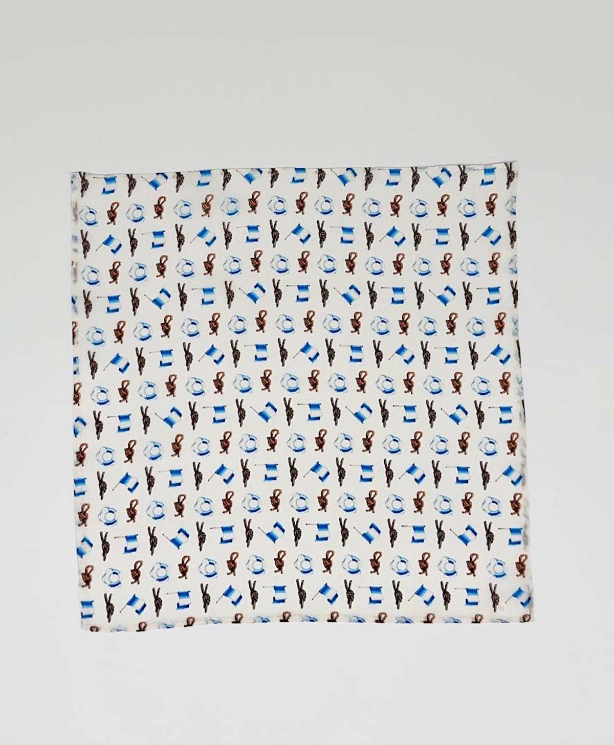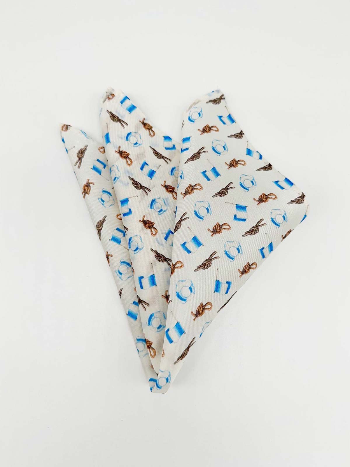 Il fondo avorio ricorda le spiagge bianche dellโ€™Egeo, mentre i micro-dettagli marittimi โ€“ salvagenti, cime nautiche e boe azzurre โ€“ ricreano lโ€™atmosfera dei piccoli porti greci dove il tempo sembra rallentare.